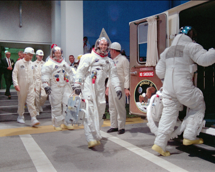 All eyes were on the crew of Apollo 11 - Buzz Aldrin, Michael Collins, and Neil Armstrong – as they made their way to the launchpad at Kennedy Space Center on July 16, 1969. Their mission, designed to put humans on the moon for the first time, is at the center of the new Apollo 11: First Steps Edition giant screen film, which opens on May 17 in the Science Museum of Minnesota’s Omnitheater.
