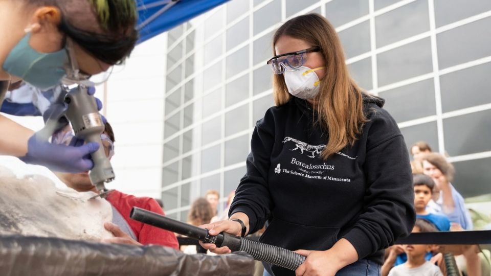 With the help of a team of volunteers, Nicole spends most of her time carefully cleaning, stabilizing, and conserving a wide variety of fossil specimens for future research or display. When not in the lab, she can be found doing fieldwork throughout Minnesota or at an outreach event sharing her excitement for the natural world and its long fossil history, inspiring the next generation of paleontologists.